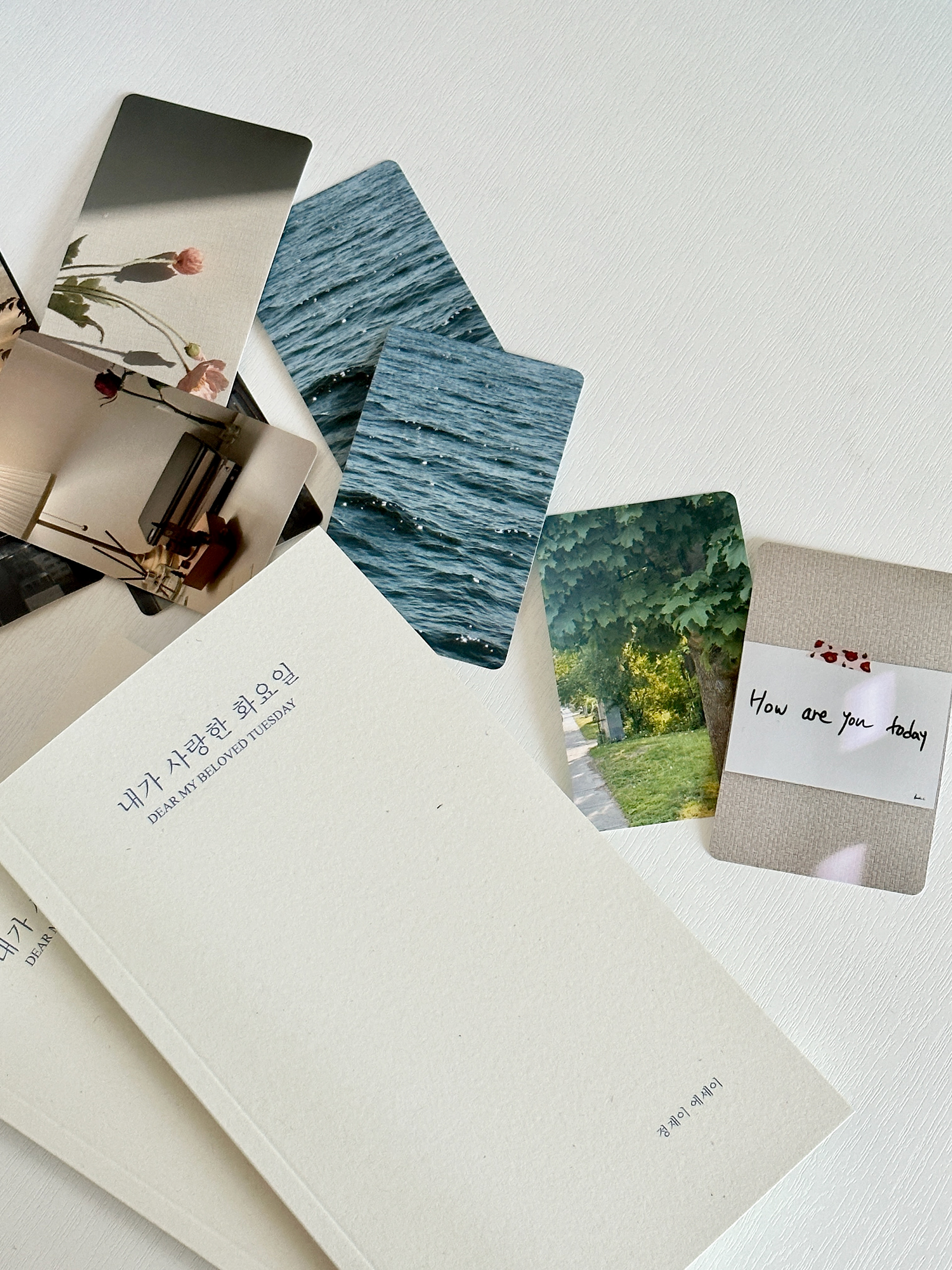 화요일마다 나를 찾고 이해하기 위해 찾았던 상담실에서의 이야기를 담았습니다. 제목에 맞춰 화요일에 찍은 사진들을 인화한 뒤 손수 책 위에 붙여 완성한 독립출판물로, 책마다 표지가 다릅니다. 2026년 1월 9일 현재 절판되었으며, 개정 출간을 앞두고 있습니다.